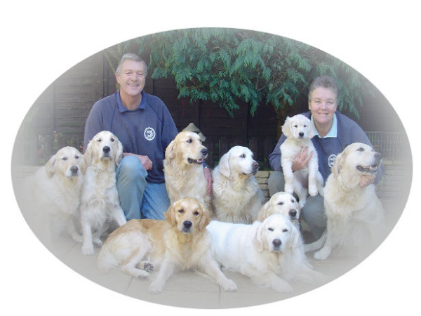 Ray and Angie have been involved in Goldens since 1985. Sam, our first, was a birthday present for Angie from Ray. He was soon followed by Penny and Misty. The three of them enjoyed dabbling in gundog work and agility, and when in the mood obedience. Penny went on to compete in working tests, became a P.A.T Dog and also the first "showdog" for our homebred junior handlers, Jenny and Jackie. Misty became our first proper showgirl, and our foundation bitch, having her first litter in April 1990.